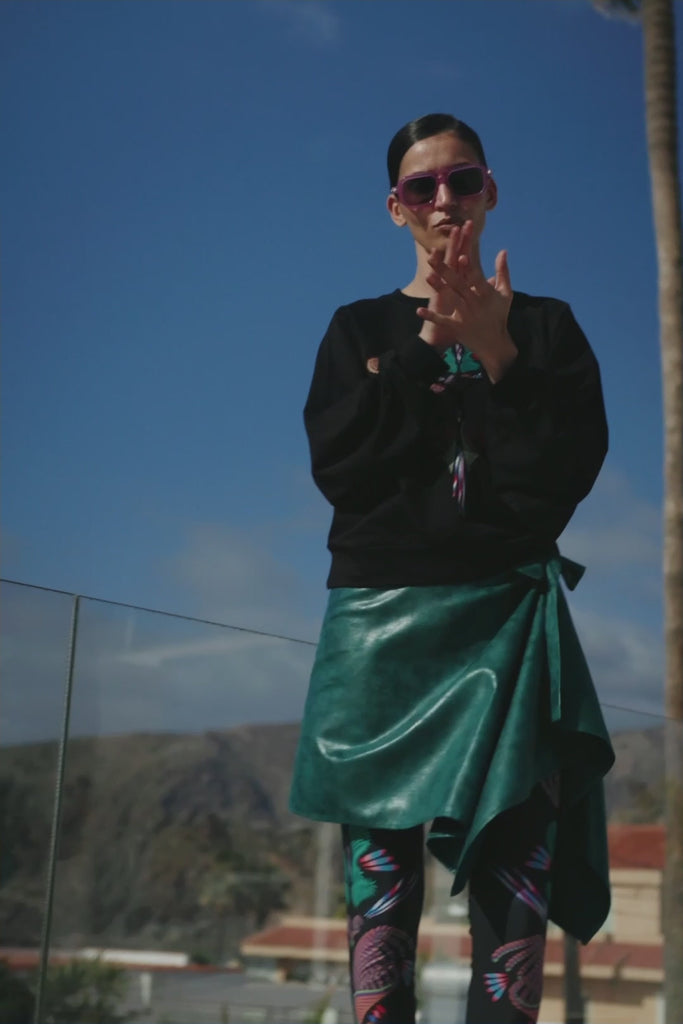 No es una sudadera común, es una sudadera que realza tu feminidad. Los cortes en la parte trasera resaltan sutilmente partes de tu espalda,despertando la imaginación. Funciona bien combinado con pantalones, leggings pero también con falda. La modelo mide 175 cm de altura.